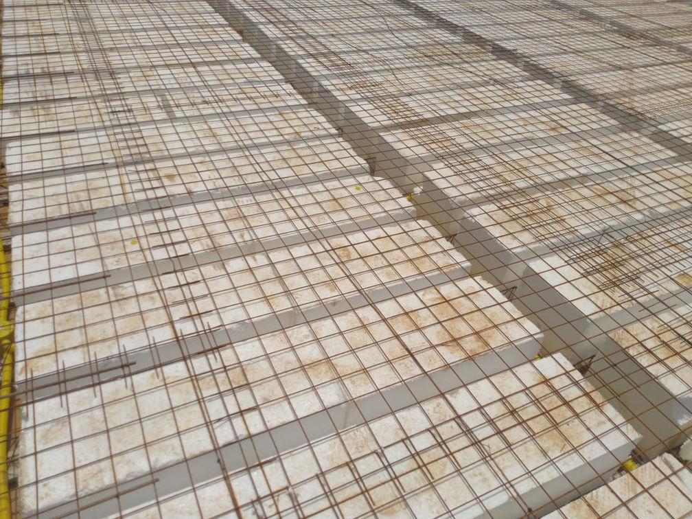 Laje tipo Bidirecional com EPS ou cerâmica (menos comum). Usamos canaleta plástica na montagem da laje, deixando-a mais segura, limpa e organizada.